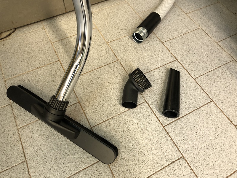 Zusätzlich ein Bodensaugset (nicht hitzebeständig) mit Schlauch, Saugrohr, Bodendüse und zwei kleineren Düsen.