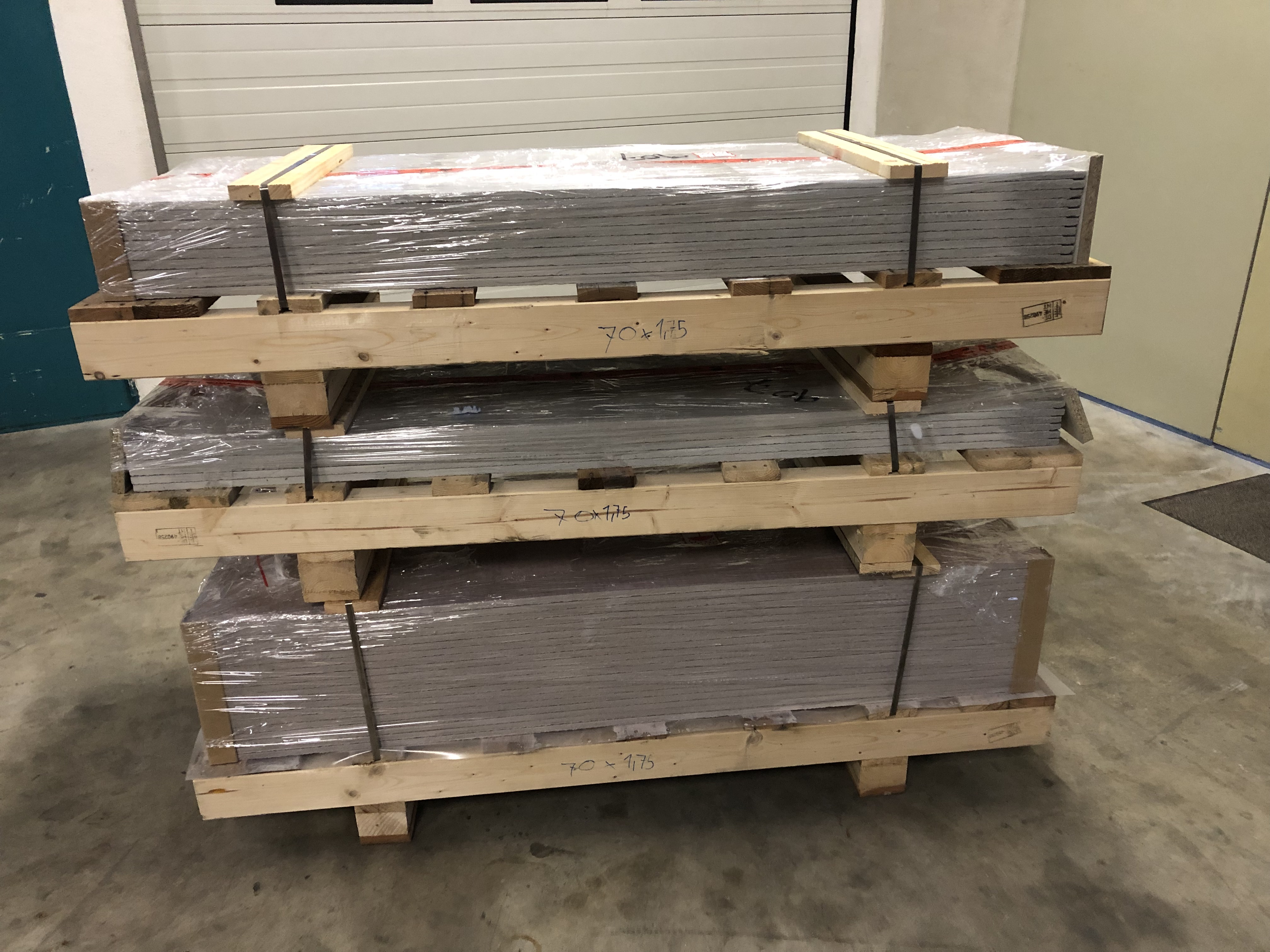 - Die Herstellung dieser Steinbackplatten erfolgt maschinell im Durchlaufverfahren, dadurch können wir eine gleichbleibend hohe Qualität liefern.